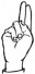 На ћирилици написано БОРИСАВА ВАСИЉЕВИЋ састоји се из 17 слова [?]. Исписано ћириличном једноручном азбуком за глувонеме: